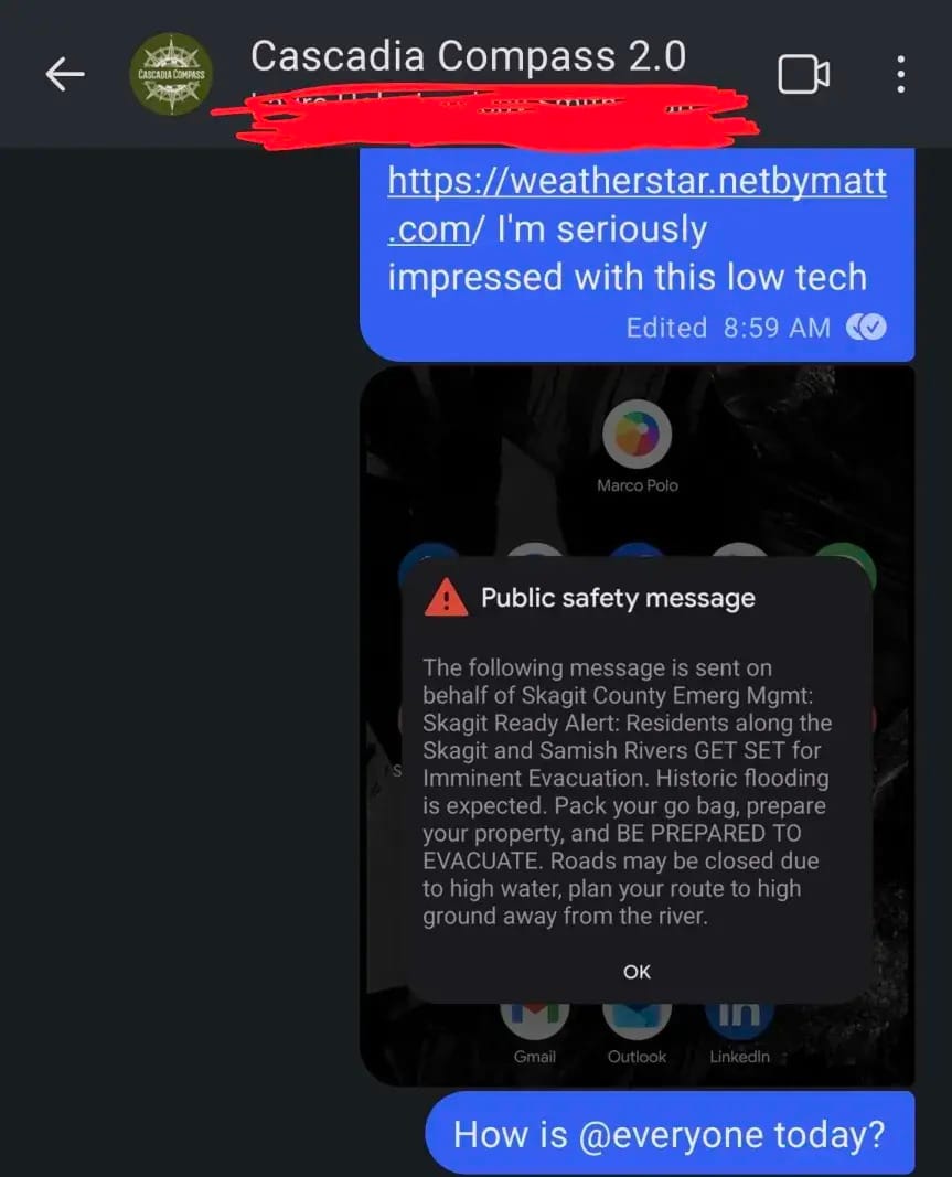 Let me paint you a picture. Yesterday morning, weather reports started looking gnarly. Not "grab an umbrella" gnarly. More like "this is gonna break 100-year flood records" gnarly. First thing I did? Hit up the mutual aid group chat. "Yo, everyone seeing this? You good? Got what you need?" Everyone checked in. We were solid. Then my phone rings. "Josh, get over here NOW. The shop's flooding." Our mutual aid home base was getting slammed. Water cascading down from the neighbor's property, turning their backyard into a river, rushing straight into the shop and the newly built sauna area. I grabbed those sandbags I'd stashed in my prep supplies (this is exactly why you keep them) and hauled butt over there. | ![]() Check out https://weatherstar.netbymatt.com ![]() |