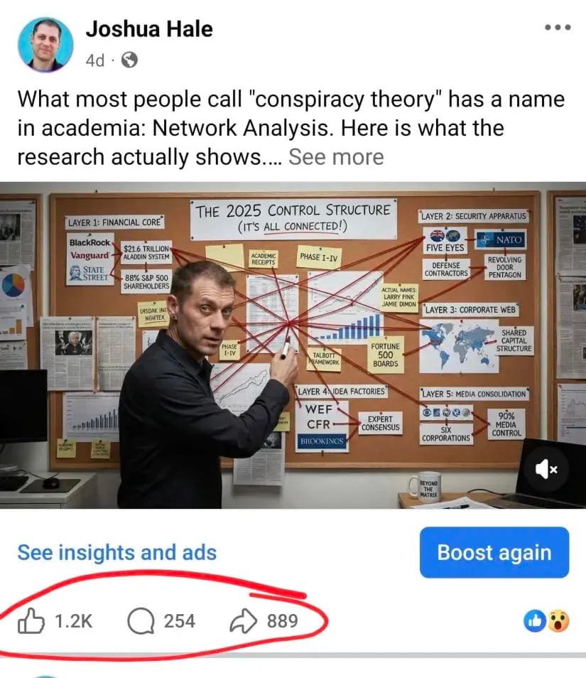 Post 2 What most people call "conspiracy theory" has a name in academia: Network Analysis. Here is what the research actually shows.